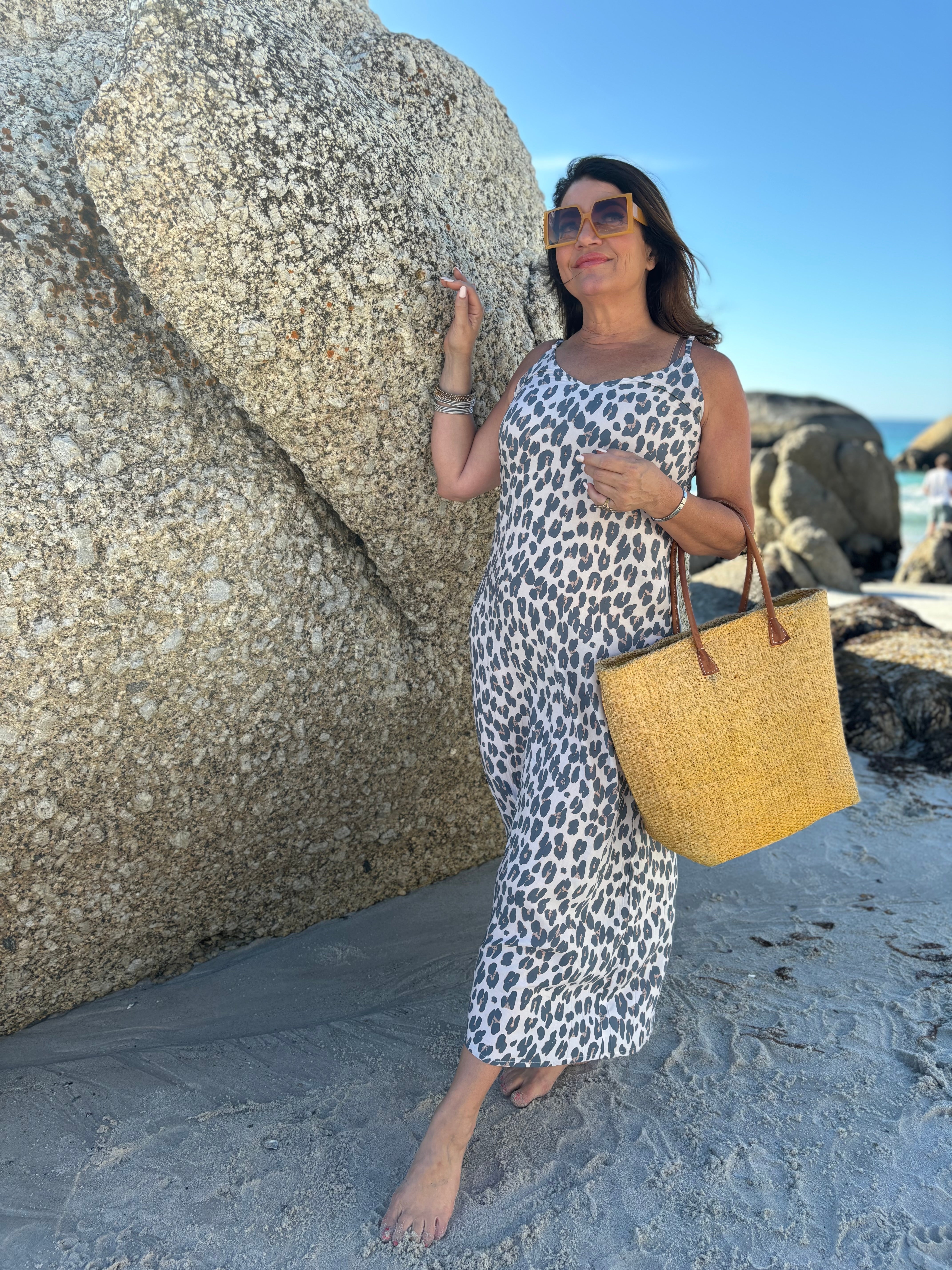 Khaki Leo Viscose Long Strapped Dress